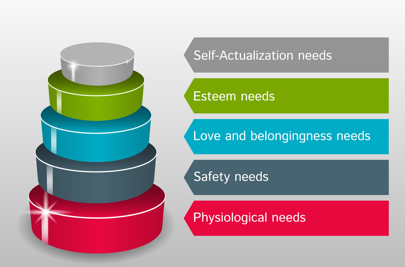 The most basic needs of human life form the base of the pyramid. These are called “physiological needs” and are essentially what a person needs to stay alive: air, water, food, shelter, sleep, clothing. Without meeting these needs, a person cannot move up to the next level of the hierarchy.
